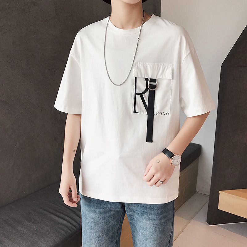 2019 Summer New Style Korean Ribbon Mens Round Collar T Shirt